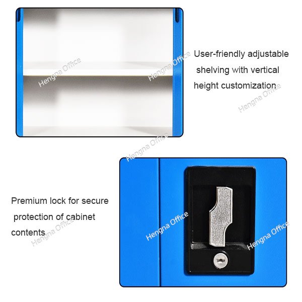 The blue five-drawer tool cabinet from Luoyang Hengna Office Furniture Co., Ltd. is designed to provide efficient storage solutions for workshops, garages, and industrial environments. This cabinet is available in two configurations: with an integrated backboard or without, allowing users to select the option that best suits their specific storage requirements. The cabinet’s dimensions are 1350mm in height, 1070mm in width, and 515mm in depth, offering substantial storage capacity while maintaining a compact footprint.