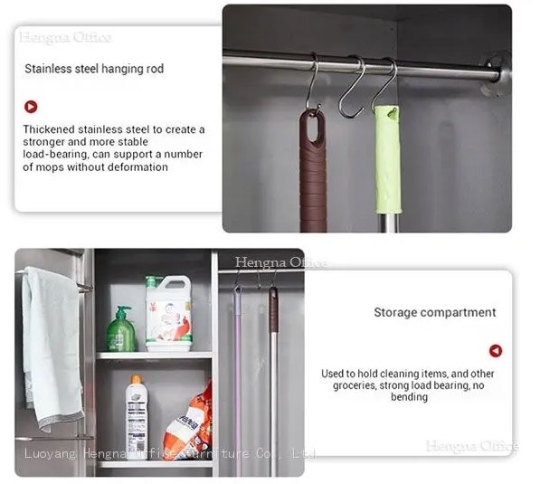 Made from 201-grade stainless steel, this single-door cabinet resists rust, moisture, and daily wear. Whether you’re storing mops, brooms, cleaning chemicals, or janitorial gear, it keeps everything organized, dry, and out of sight. With ventilation holes, a secure lock, and reinforced hanging rods, it’s not just a cabinet — it’s a smart storage upgrade for any professional setting.